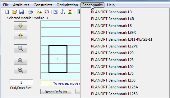 Benchmark Menu![]() You may choose any of the benchmark problems to display the data and the optimized layouts. The data may be exported to compare the results with other FLP software packages. |