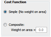 The user may choose between a “Simple” and “Composite” cost function. A simple cost function does not include the area of the enclosure. It is only a function of cost of flow and the inter-module distances. A composite function has an additional term for the enclosure area with a user-specified weight on the area. When the user chooses a composite cost function, the “Weight on area” data entry box is enabled for the user to enter the required weight. |